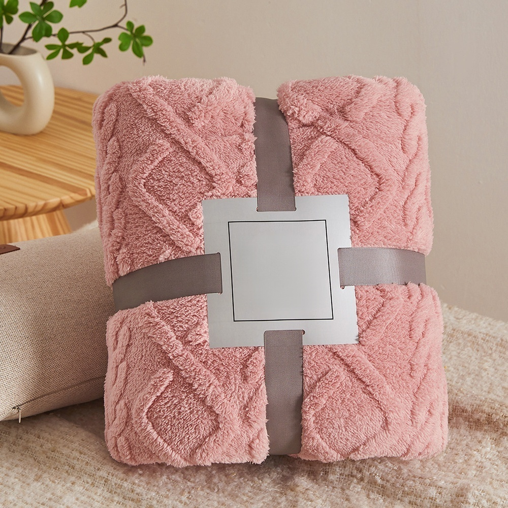 Manta de terciopelo coral AB, doble cara, jacquard de franela
